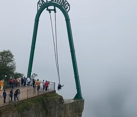 The ride involved is a slingshot-style attraction designed to launch riders into the air using tensioned cables, giving them a feeling of weightlessness before safely lowering them back down. According to witnesses, the ride began normally, with the rider appearing calm and ready for the launch. However, during the ascent, one of the safety harnesses appeared to shift unexpectedly, leading to the rider losing proper seating position.