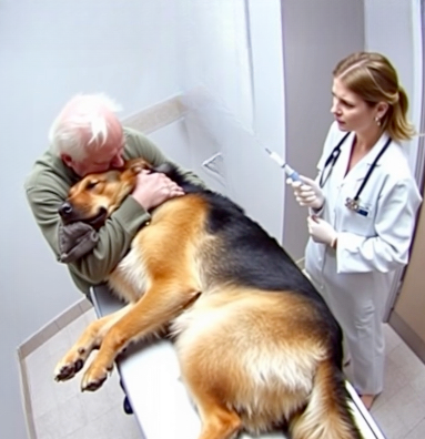 The veterinarian, calm but solemn, prepared for the difficult procedure. Her assistant stood nearby, eyes lowered, knowing the weight of this kind of goodbye. Artem had braced himself. He whispered gratitude, promises, and parting words.