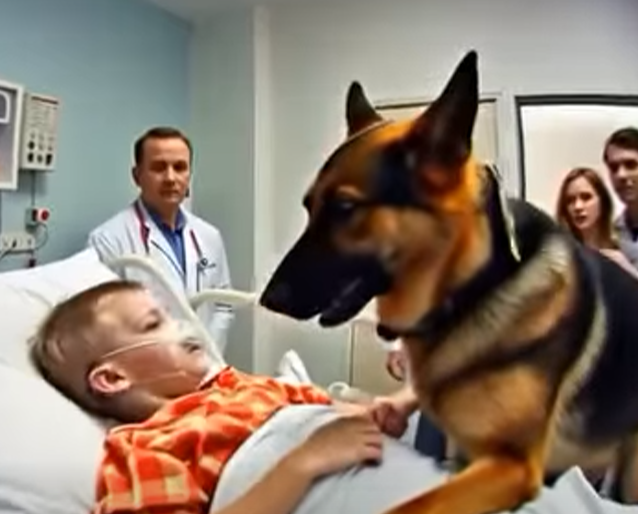 Before the surgery, the boy hugged his dog, but suddenly the dog jumped off the bed and lunged at one of the doctors: