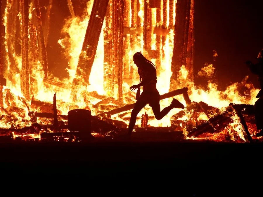 This is one of the final picture of Aaron Joel Mitchell. Aaron ran into the burning structure during the 2017 Burning Man festival. He died because of this. It is unclear why he did this.