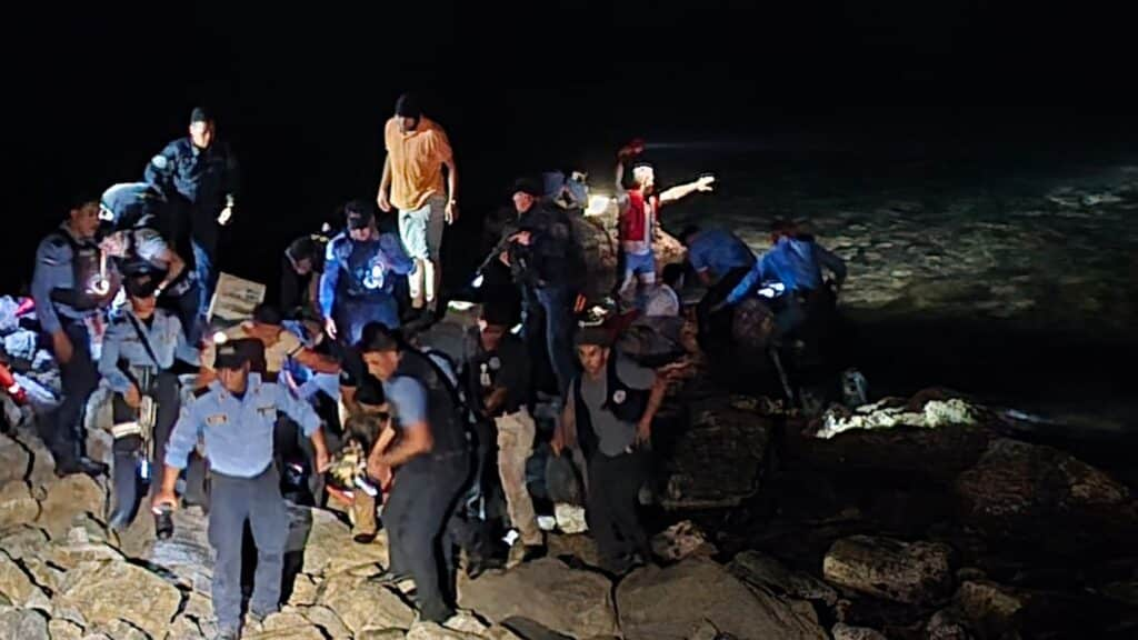 Images showed emergency personnel recovering bodies from the sea on Monday night by torchlight.